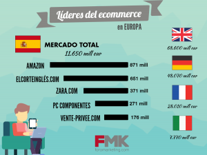 Así, del volumen total facturado por el ecommerce español, cifrado en 11.640 millones de euros, la primera y segunda posición la ocupan Amazon y El Corte Inglés respectivamente, seguido de Zara, que alcanzó los 371 millones, PC componentes, con 271 millones de facturación y Vente-privee.com con 176 millones de euros anotados.
