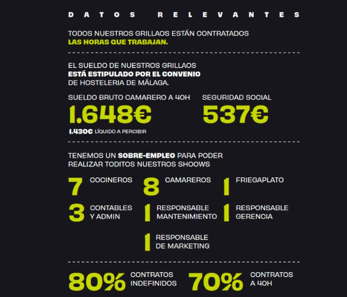 “La idea fue de uno de mis socios… Nos dimos cuenta de que ninguno de nuestros camareros había estado contratado jamás por las horas que realmente trabajaba y nos dimos cuenta de que teníamos una desventaja competitiva porque nuestros precios eran los mismos que los de la competencia, pero pagábamos mejor a nuestros empleados”, comentaba Sergio Díaz, cocreador de Grillaera en CADENA SER.